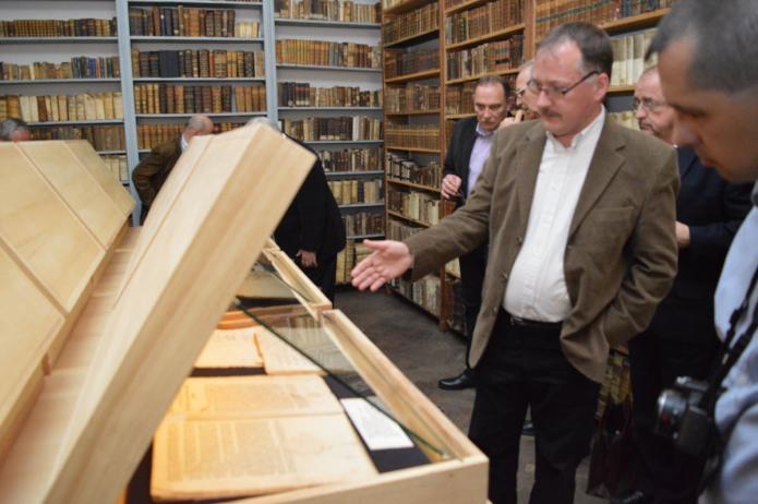 Kiállítottuk Décsei Pál marosvásárhelyi diák Marburgban szerzett kolligátumát, amely tíz, a peregrinációjával kapcsolatos nyomtatványt tartalmaz, köztük két, nevére szóló szárazpecsétes oklevelet. Egy külön tárlóban emlékezünk arról a két református nyomdászról, akik szintén külföldön gyarapították a tudásukat, Misztótfalusi Kis Miklósról és Páldi Székely Istvánról. Az utolsó tárló egy kutatás-történeti keresztmetszet az erdélyi vonatkozású szakirodalomból.