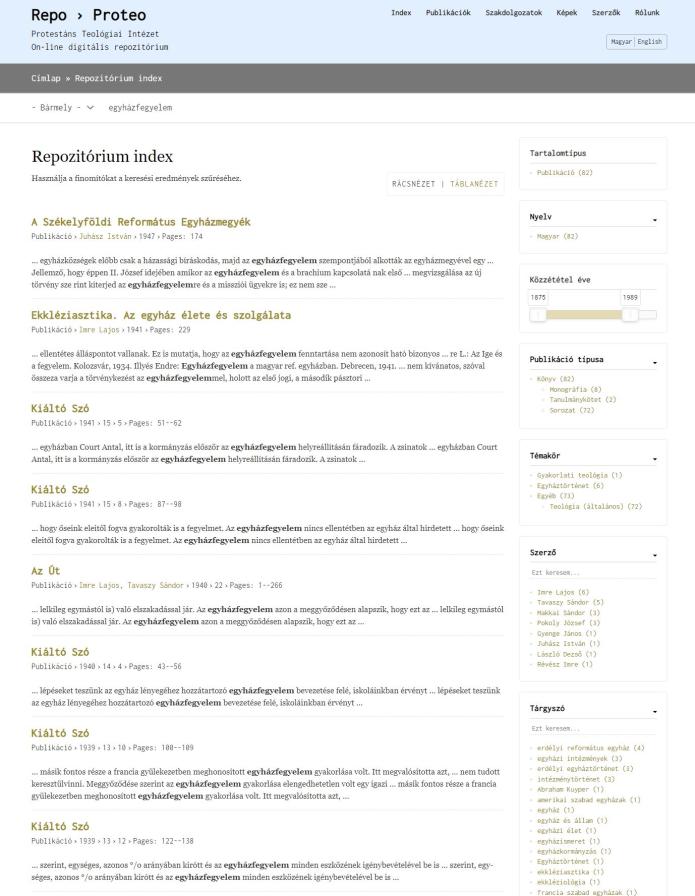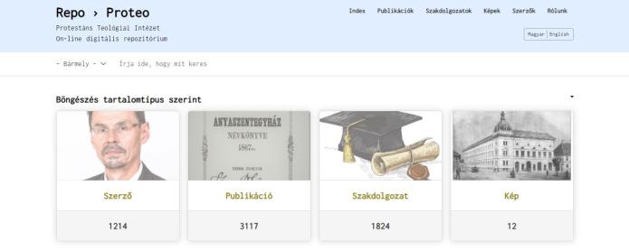 A Repo > Proteo a KPTI digitális on-line tárhelye, amely olyan tartalmak (dokumentumok, képek) rendszerezett tárolását és közzétételét teszi lehetővé, amelyek kapcsolódnak az Intézetben zajló oktatási és kutatási tevékenységéhez, illetve amelyek a Teológiai Intézet háttérintézményeként működő romániai református egyház szakmai és tudományos publikációs tevékenységéhez kötődnek.